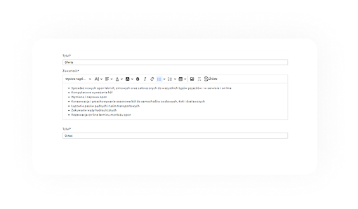 Zbuduj profesjonalny wizerunek swojego serwisu! W ramach Serwis500 otrzymujesz dedykowaną stronę warsztatu, gdzie możesz zaprezentować swoje usługi, godziny otwarcia. Zwiększy to Twoją widoczność w sieci i pomoże w pozyskiwaniu nowych zleceń. Zainwestuj w swoją obecność online i przyciągnij więcej klientów.